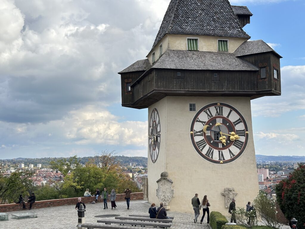 Sowohl für den Uhrturm Graz als auch für den Glockenturm gibt es Führungen. Bei den Führungen erfährst du noch mehr über die beiden Türme, über ihre Geschichte und kannst auch in die Türme heinein – das bleibt dir normalerweise verwehrt! Je nach Jahreszeit finden diese zu unterschiedlichen Zeiten und unterschiedlich oft statt. Brauche ich ein Ticket für die Uhrturm Führung? Alle wichtigen Informationen zu den Führungen am Uhrturm und am Glockenturm findest du unter Uhrturm Graz Führung.